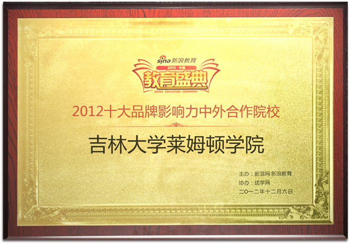2012年新浪教育盛典“十大品牌影响力中外合作院校”