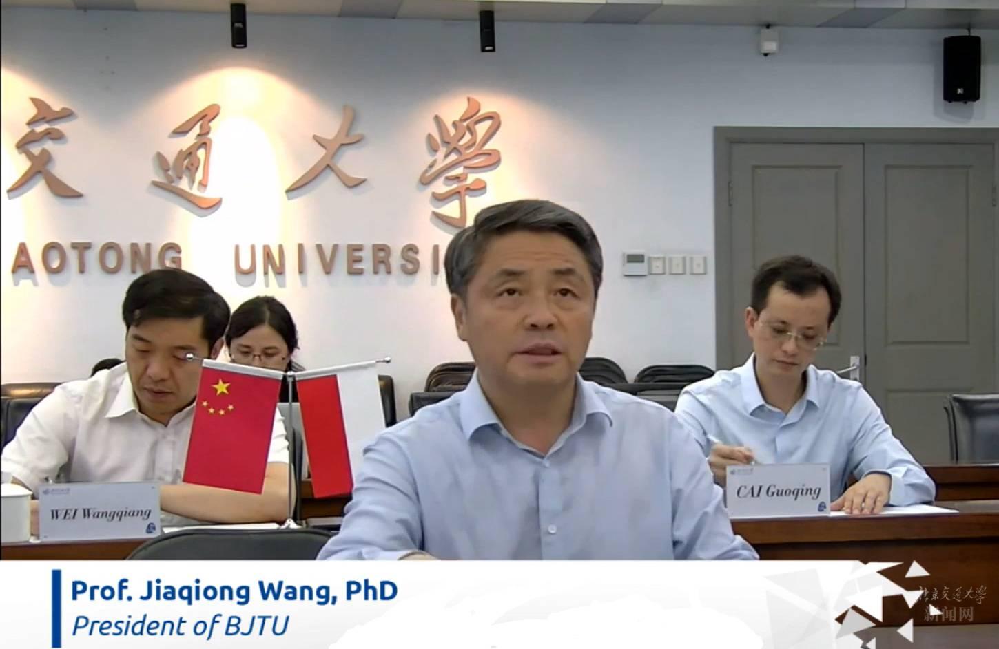 北京时间6月23日下午,北京交通大学-华沙理工大学“文化、教育、科学”研讨会在线上举行。校长王稼琼与华沙理工大学校长克日什托夫·扎雷姆巴(Krzysztof Zaremba)出席开幕式并致辞。副校长关忠良陪同出席开幕式活动。
