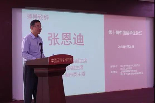 论坛由上海中国留学生博物馆馆长李克欣主持,由致公党上海市委主委张恩迪在论坛上发表致辞。张恩迪强调,当前新冠疫情仍在全球肆虐,面对百年未有之大变局,如何更好地发挥留学生作用,尤其是高层次留学人才作用,是一个重要课题。