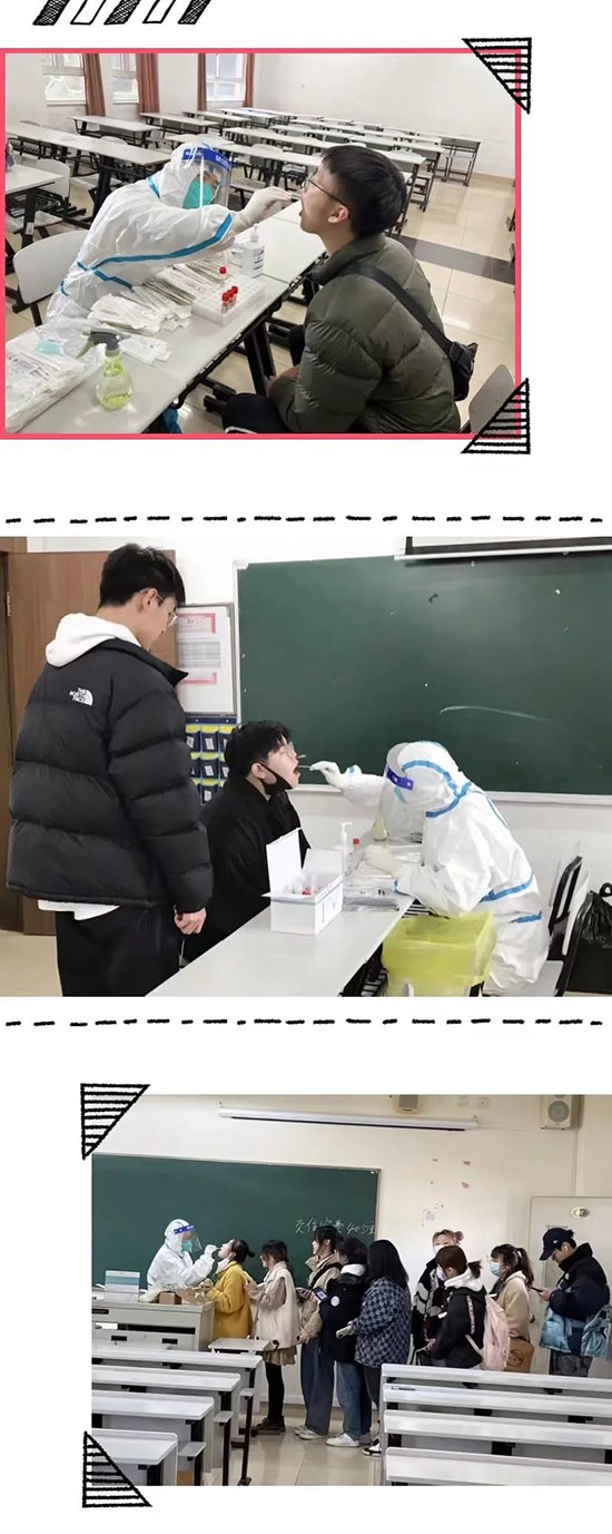 目前,疫情防控形势依然严峻,学生在完全符合入校条件的前提下,方可入校。从来校前提供48小时内的核酸报告,到入校后统一组织第二次核酸检测,尽显学校防疫措施的严谨。下午,同学们进行集体核酸检测,以实际行动守好学校的防疫之门。