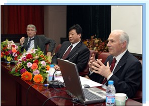 学院秉持“请进来,走出去”的国际化高端办学理念,积极开展对外学术交流与合作。学院开设的“国际风云高端论坛”等各类学术讲座名家云集。至2019年12月,学院累计聘请国内外顶级专家90多人次来校讲学,讲授内容涉及到政治、经济、文化、外交等各个领域,在全校师生中产生了强烈反响。学院师生也参加了大量的中外学术会议,拓展了学术视野,增进了学术交流。戴长征教授多次参加国外重要学术会议,熊李力教授和王宏禹教授多次在德国与各国学者和政界人士进行广泛的探讨与交流,王波教授多次在美国参加各类学术会议,熊光清教授在新加坡和马来西亚与众多知名学者广泛交流,这些都有效扩大了学院国际政治学专业的知名度,提升了学术影响力。