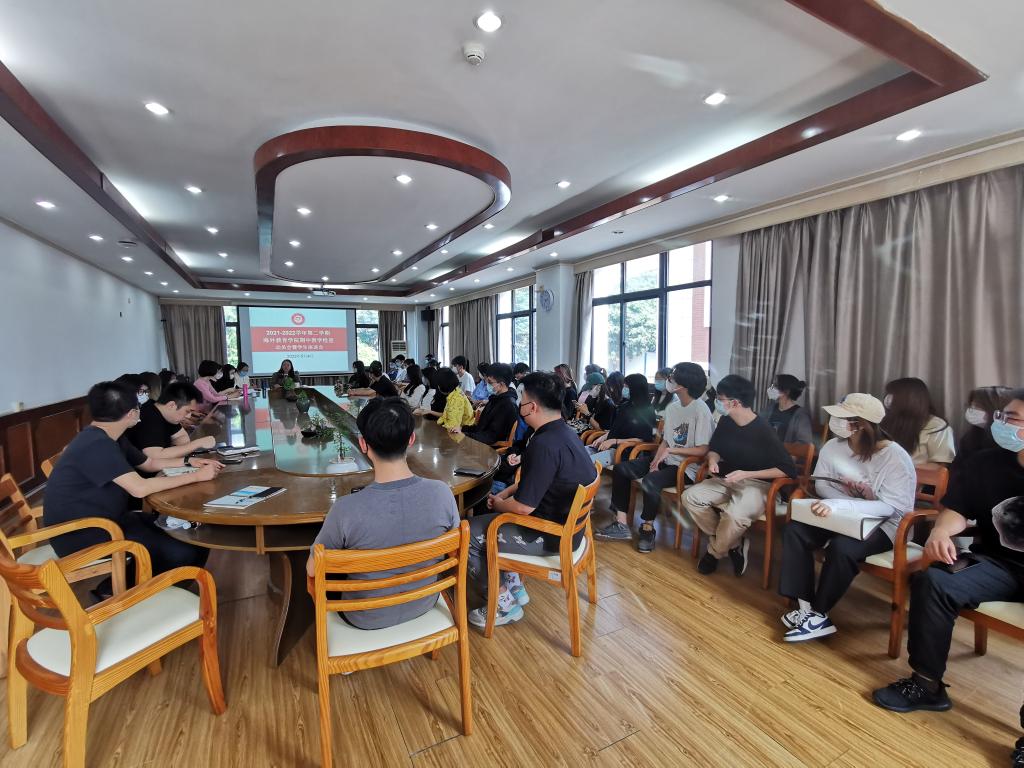 5月4日下午,海外教育学院召开2021—2022学年第二学期期中教学检查动员会暨学生座谈会。学院教学办公室人员、辅导员及中外学生代表以线上线下相结合的方式参加会议,会议由学院副院长陈辉主持。