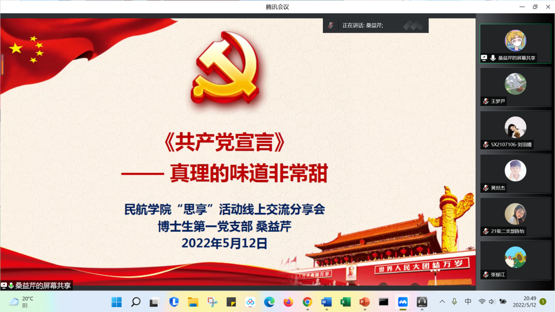 为认真贯彻落实习近平总书记关于党史学习教育的重要论述精神,营造良好的党史理论学习教育氛围,学习百年党史,汲取奋进力量,将红色基因融入血脉,民航学院组织各研究生党支部于2022年5月5日至18日推出“思享”计划·14天理论学习打卡活动,进一步提升党员们理论知识学习的主动性。